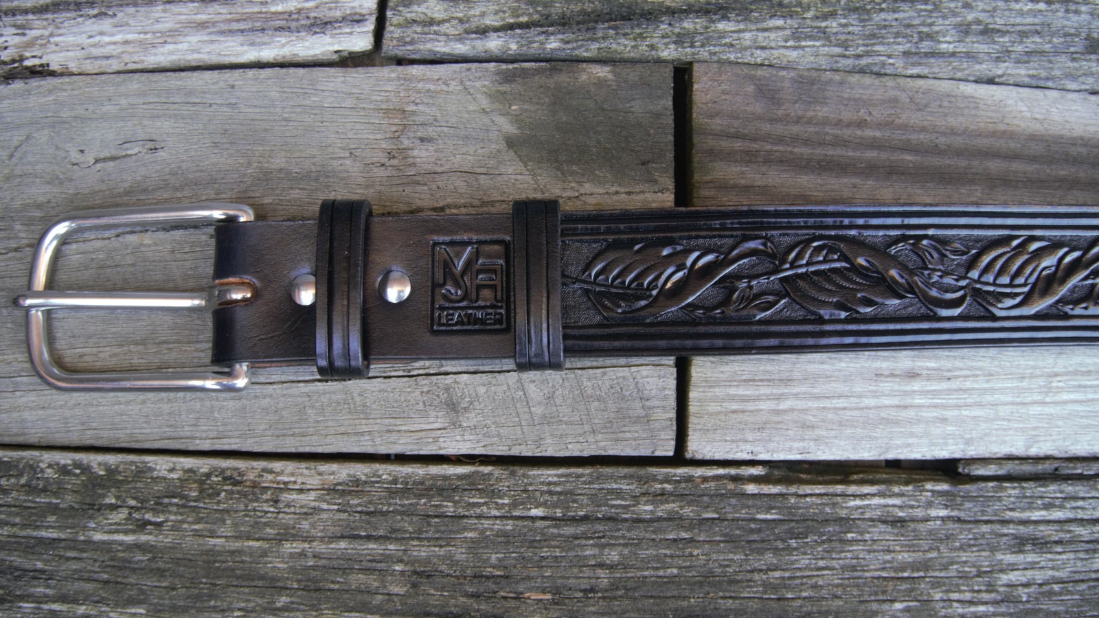 Be the first to review “Men’s 2 inch Wide Hand Carved & Tooled Leaf Pattern Leather Belt Stainless Steel Buckle” Cancel reply